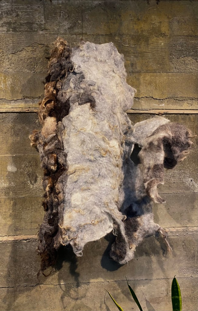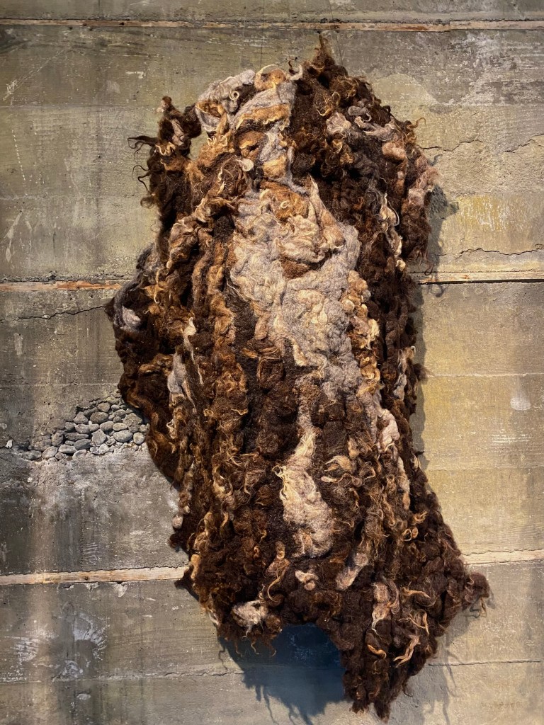 Materials: Raw Wool, Found Wood, Rope, Wax